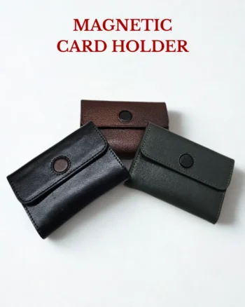 প্রিমিয়াম লেদার দিয়ে তৈরি অত্যন্ত স্টাইলিশ ও ক্লাসি ম্যাগনেটিক কার্ড হোল্ডার, যার ভিতরে ৩টি চেম্বার ও বাইরে ১টি চেম্বার রয়েছে। রঙ পাওয়া যায় — সবুজ, ব্রাউন ও কালো।