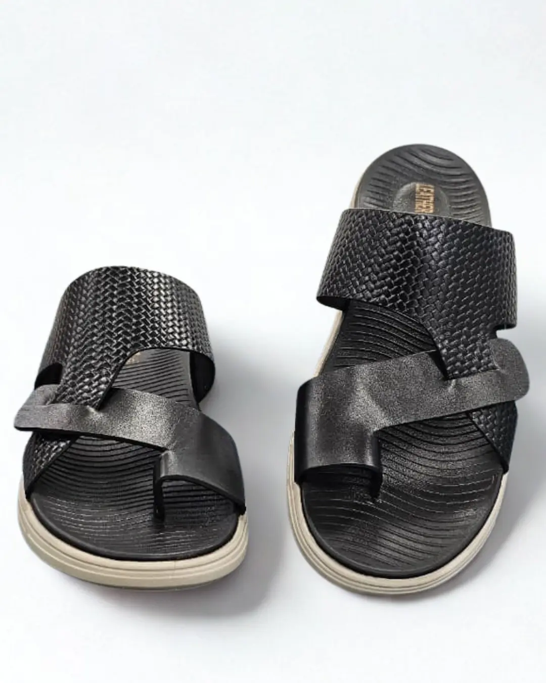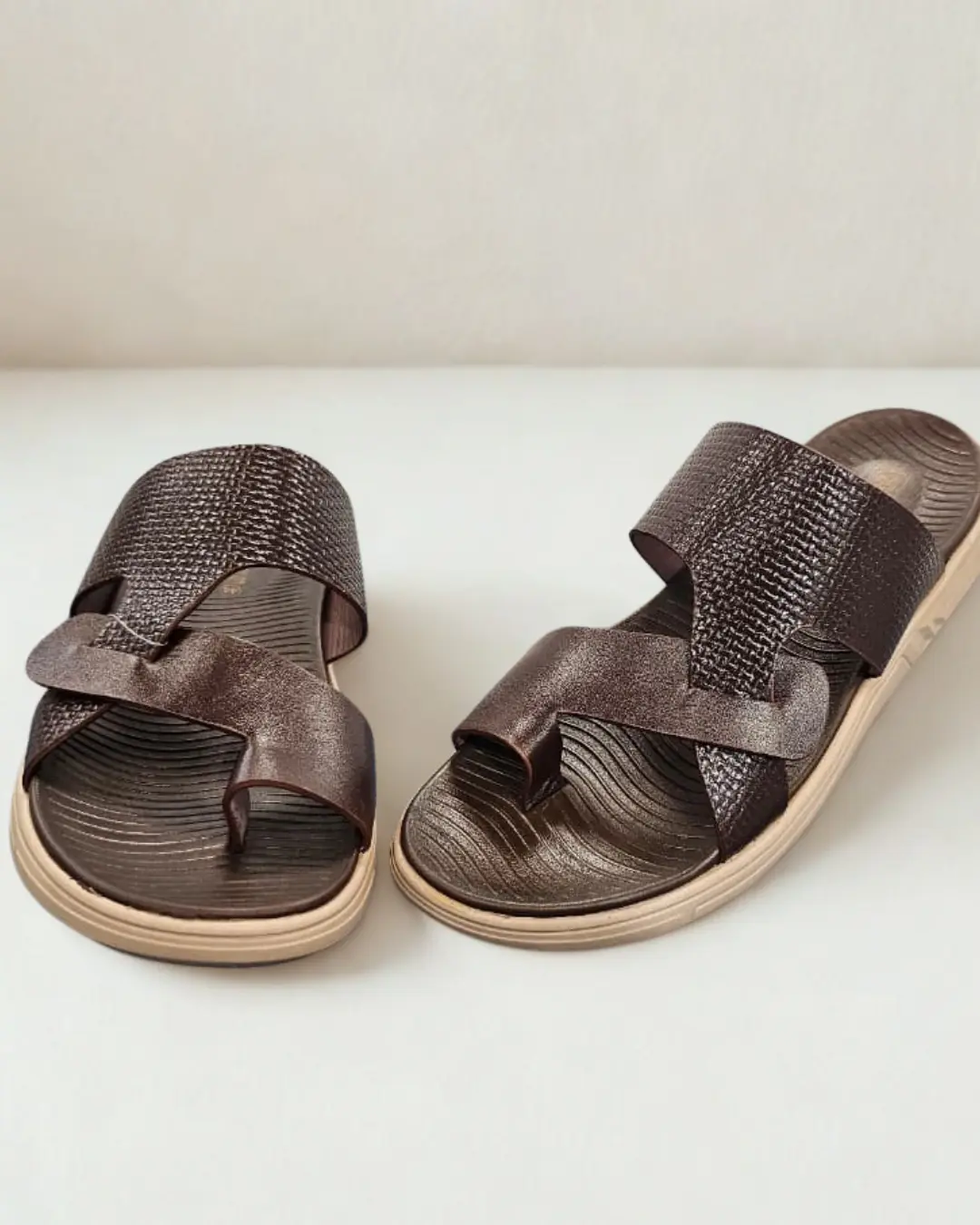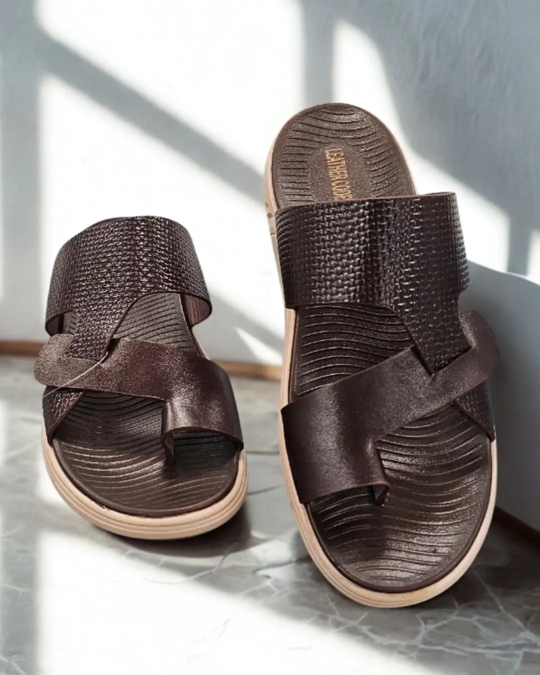 স্টাইল ও আরামের সমন্বয়ে তৈরি এই ফিনিশ লেদারের স্যান্ডেলে রয়েছে খাঁটি লেদার আপার এবং ফাইলন ইনসোল ও সোল। বেল্টবিহীন আকর্ষণীয় ডিজাইন, দৈনন্দিন ব্যবহারের জন্য উপযোগী এবং সব বয়সের পুরুষের জন্য উপযুক্ত।