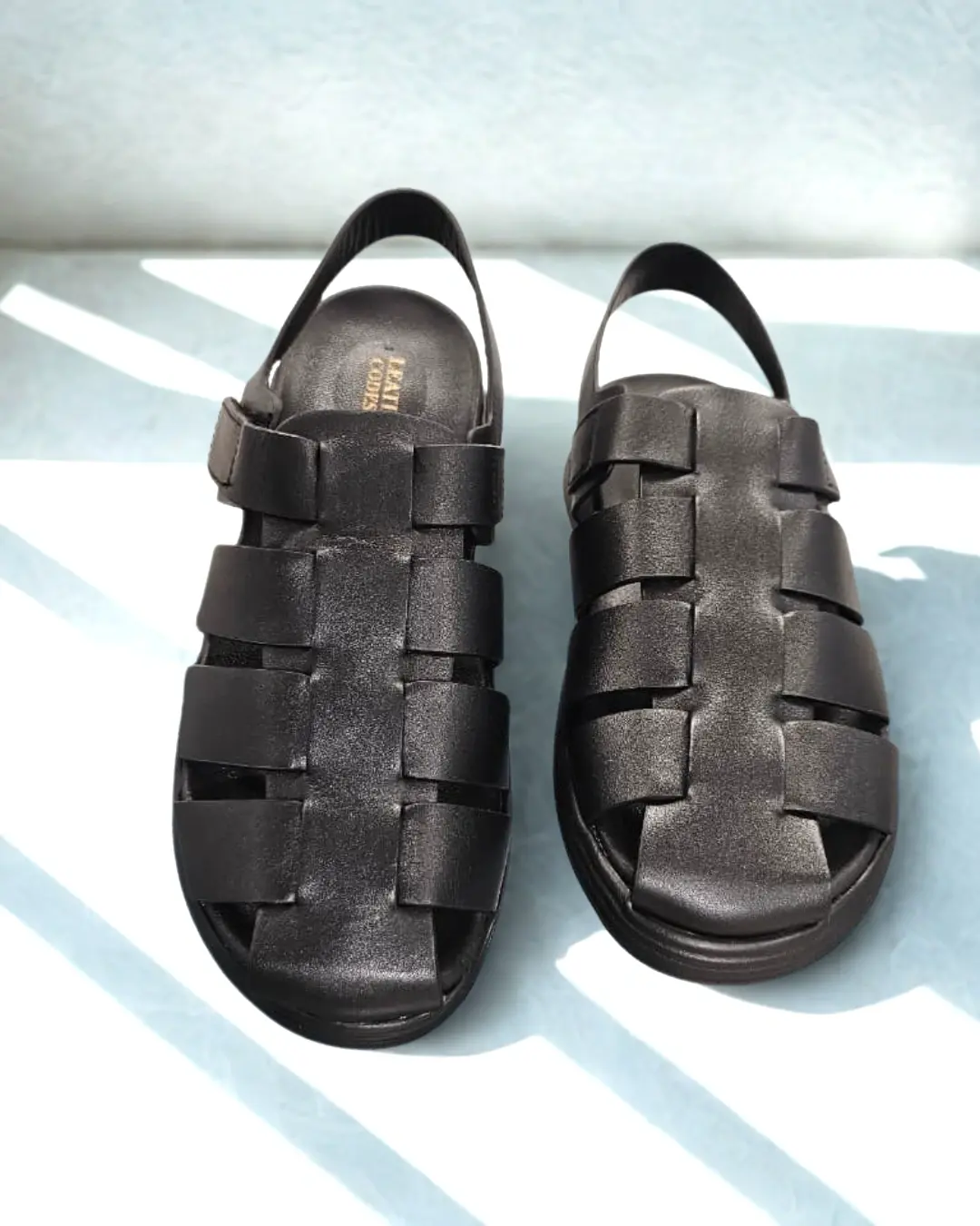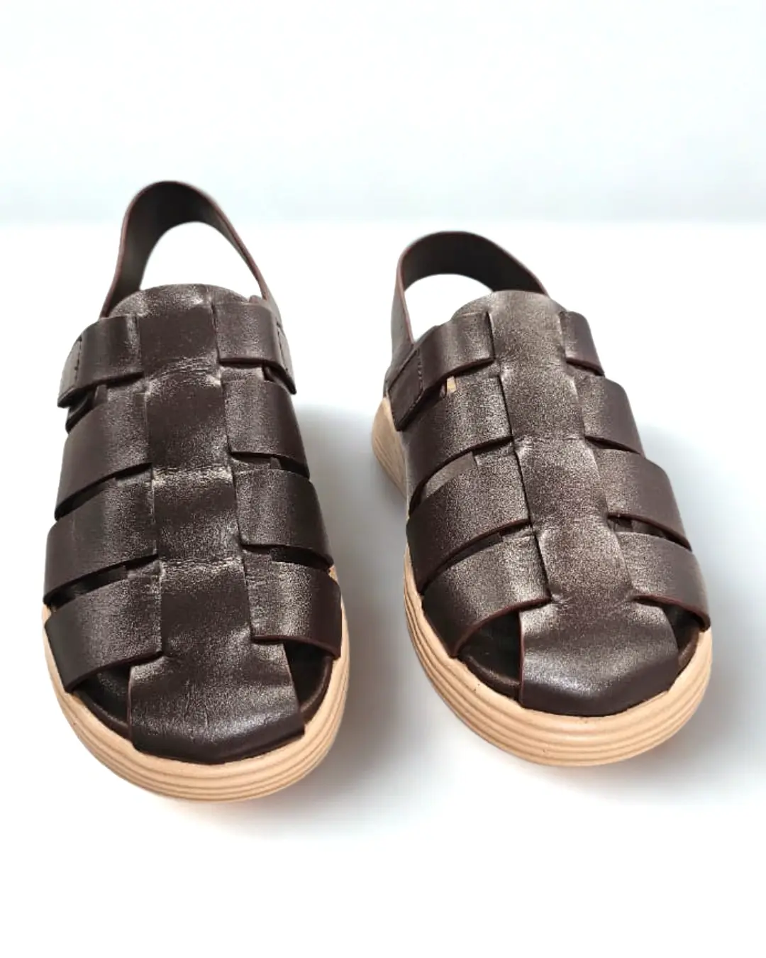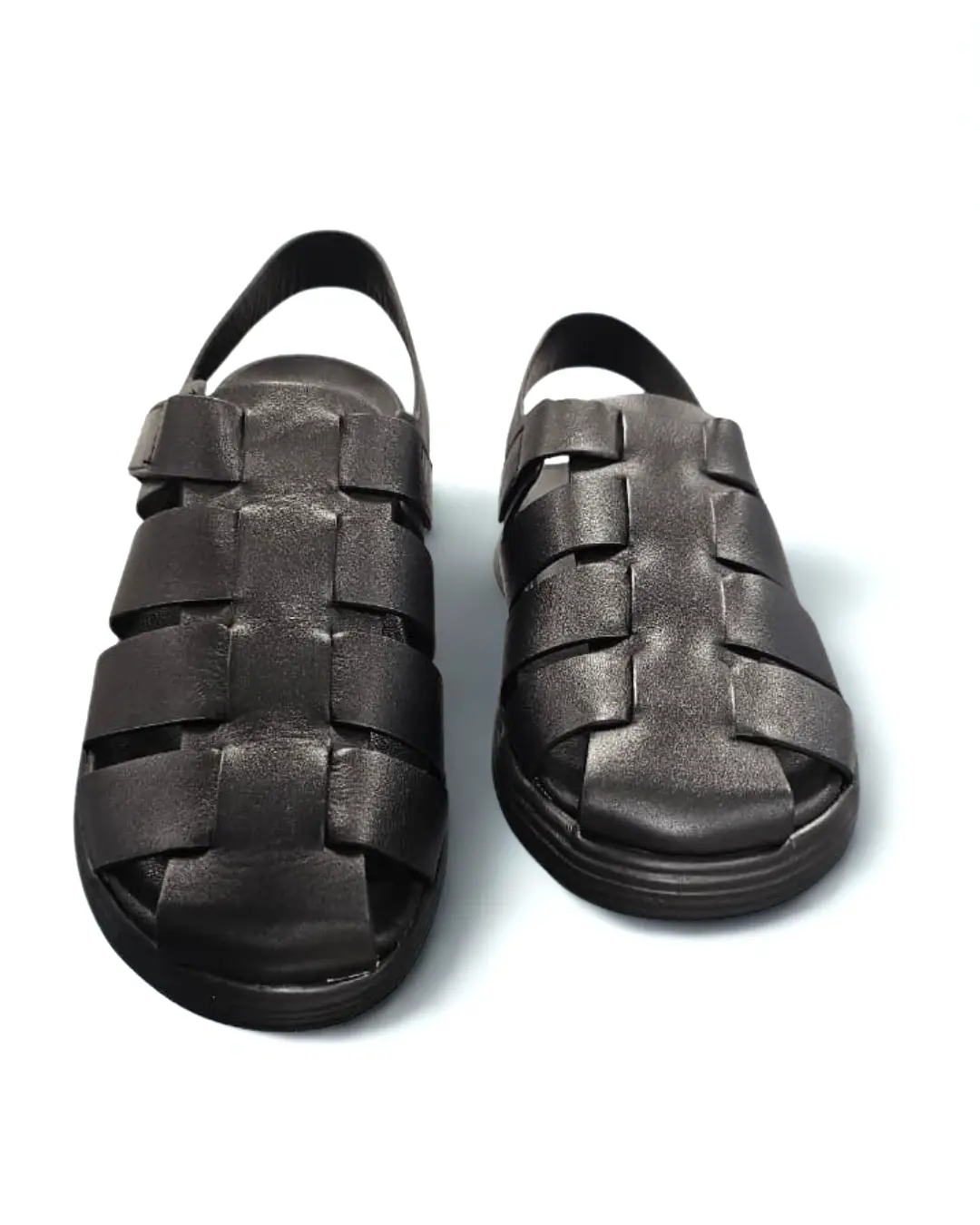 খাঁটি লেদার উপকরণে তৈরি ফিনিশ লেদারের স্যান্ডেল, মজবুত PVC সোলসহ। বেল্টবিহীন আধুনিক ডিজাইন, রাফ ইউজের জন্য উপযোগী এবং সব বয়সের পুরুষের জন্য আদর্শ।